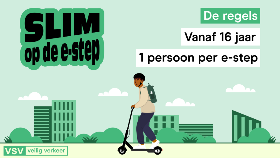 De VSV (Vlaamse Stichting Verkeerskunde) lanceert op 24 november de onlinecampagne Slim op de e-step. Die campagne frist de belangrijkste verkeersregels voor e-steps op en stimuleert veilig gedrag. Ze richt zich vooral op jonge e-steppers.